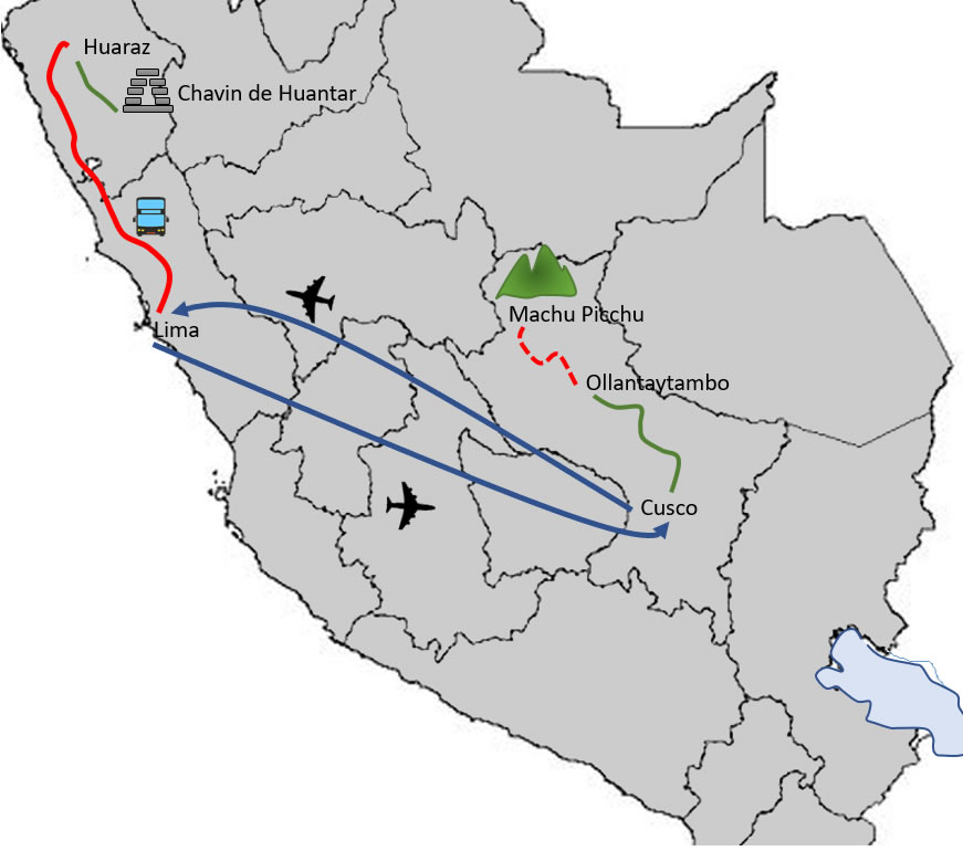 Travel Itinerary: Lima city Huaraz Chavin de Huantar Cusco city Machu Picchu inca citadel